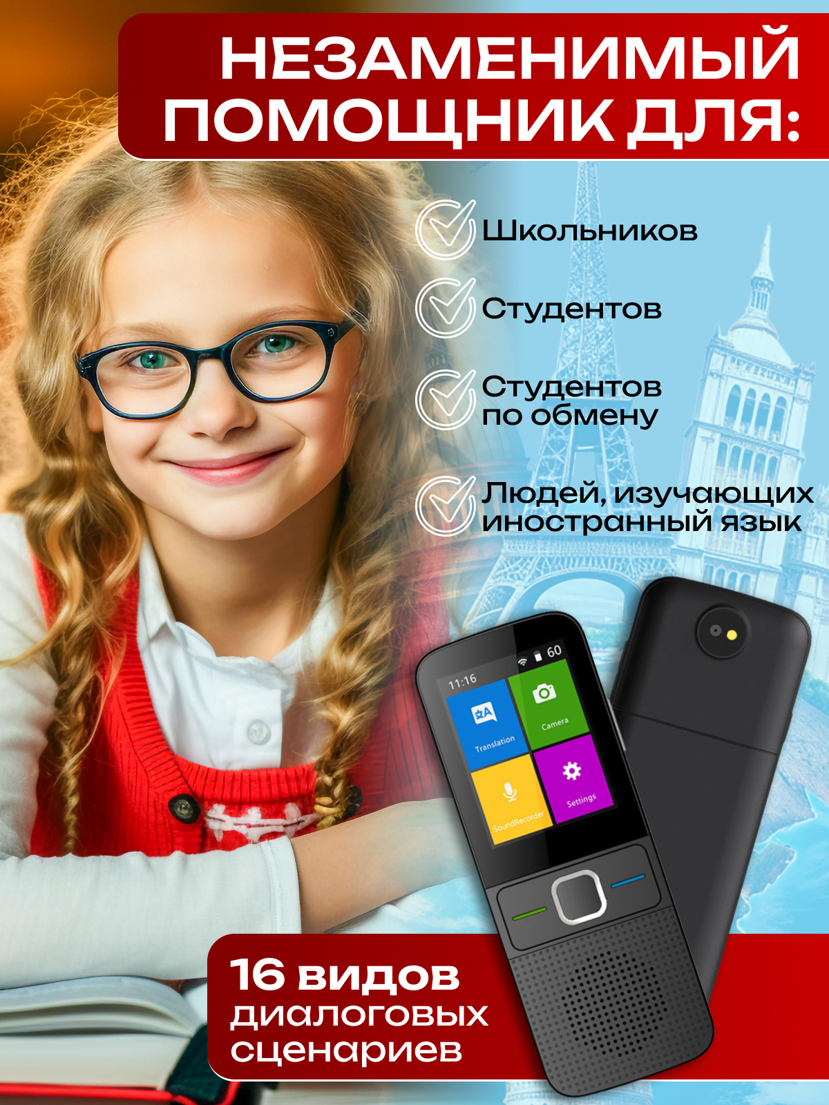 Голосовой переводчик Т10, многоязычный, перевод по фото информация: