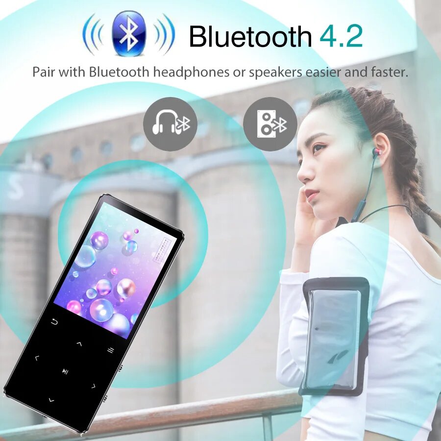 Mp3-плеер 2,0 дюйма, металлический музыкальный плеер MP4, HiFi Bluetooth 5,0, поддержка Mp3, карта памяти, динамик с FM-будильником