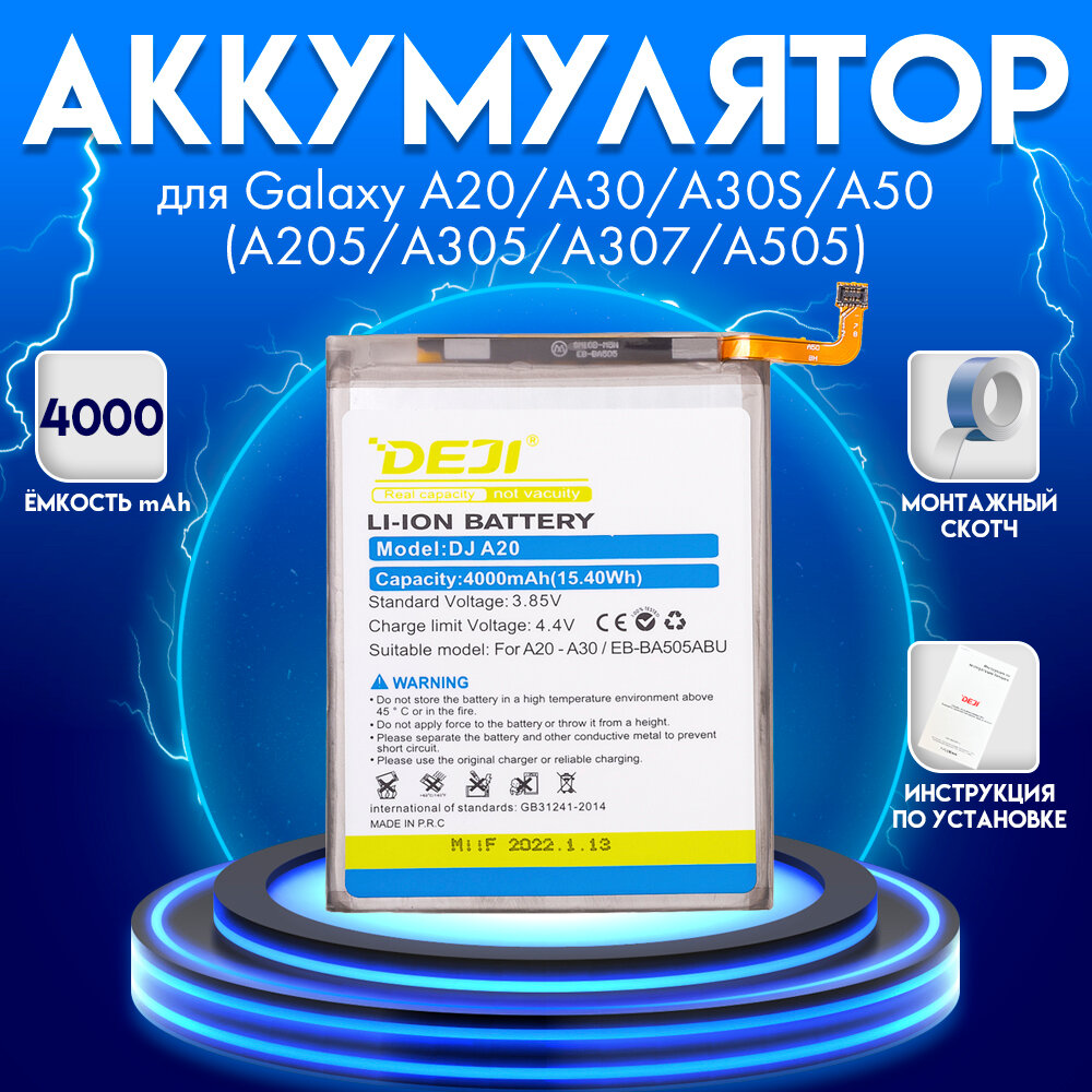10 цен на Аккумулятор для Samsung Galaxy A20 A205 A30 A305 A30s A307 A50 A505 4000 mah + клей + набор инструментов + монтажный скотч + инструкция