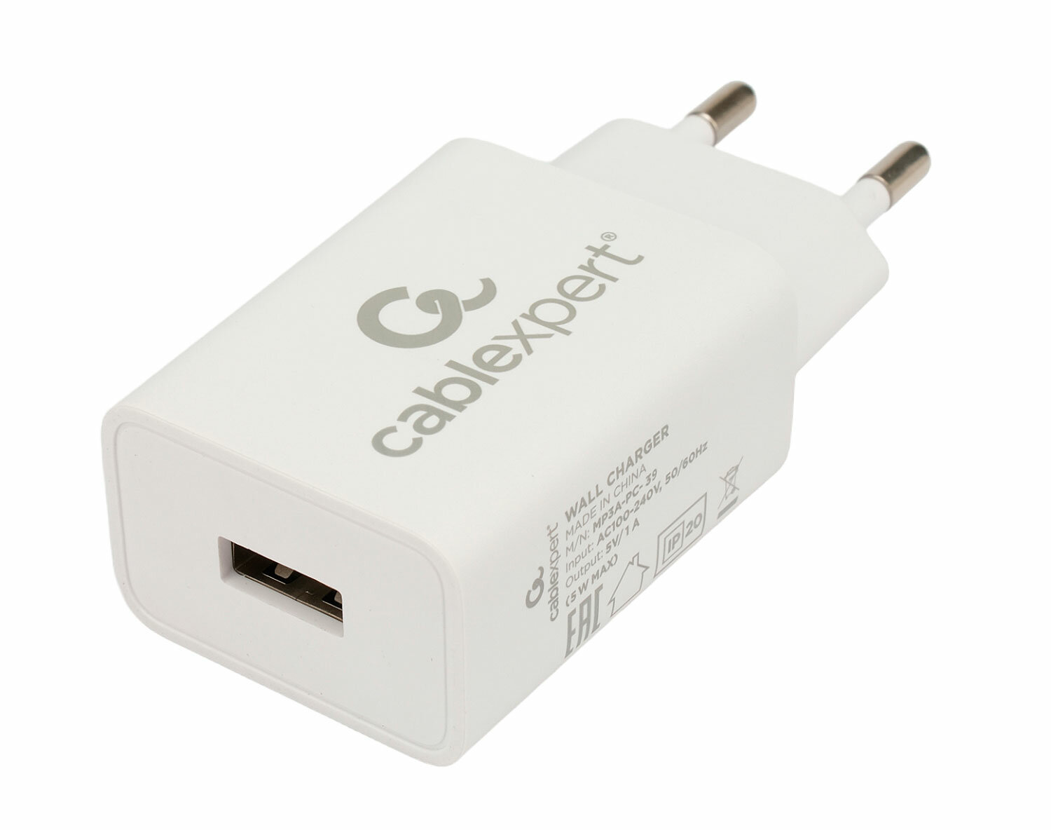 Зарядное устройство Gembird Cablexpert USB 1A 5V White MP3A-PC-39