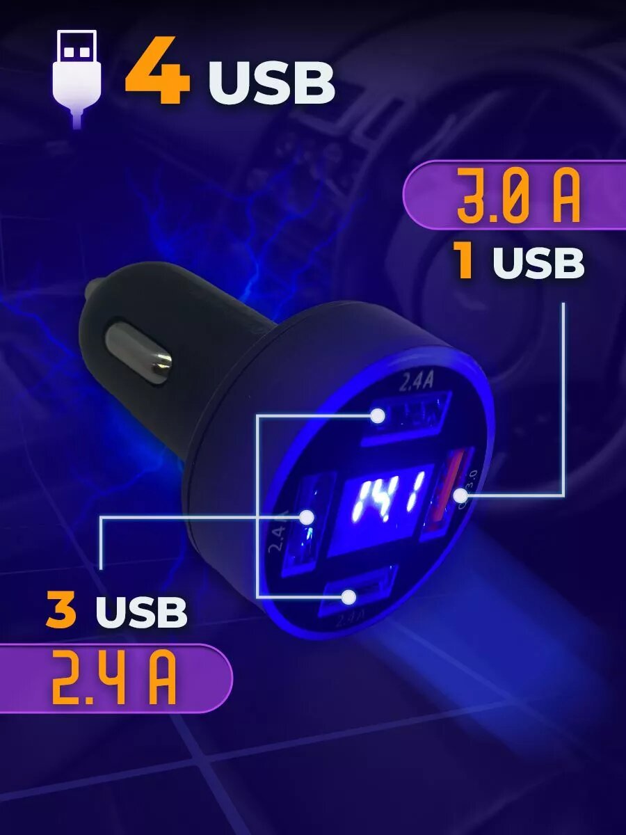 Автомобильное зарядное устройство 4 USB QC 3 информация: