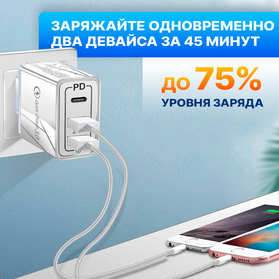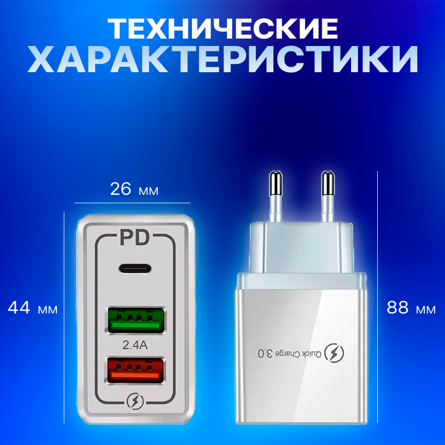 | Дополнительная информация | Зарядное устройство подходит для всех смартфонов, ноутбуков и гаджетов, которые заряжаются через USB и Type-C |