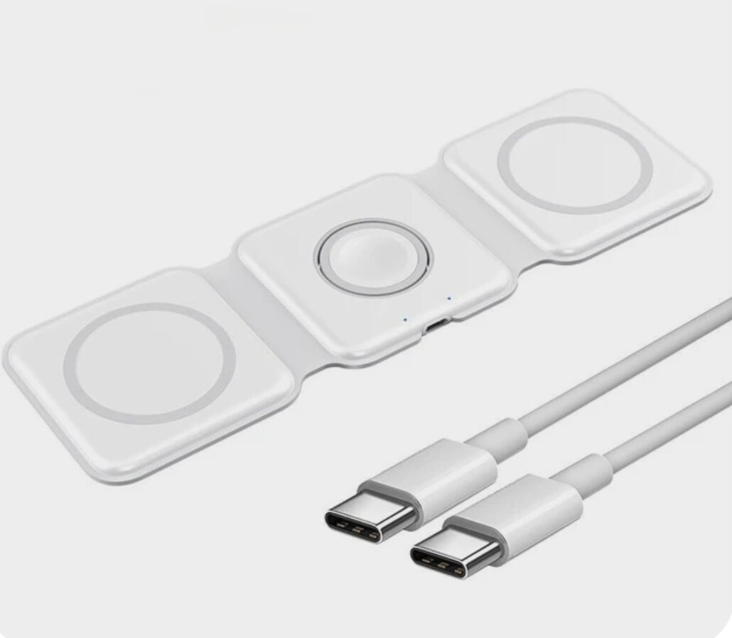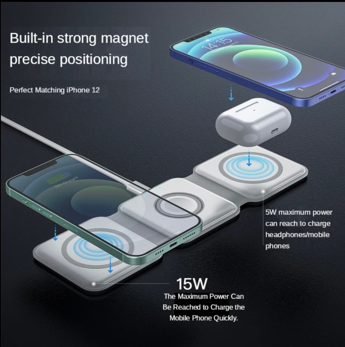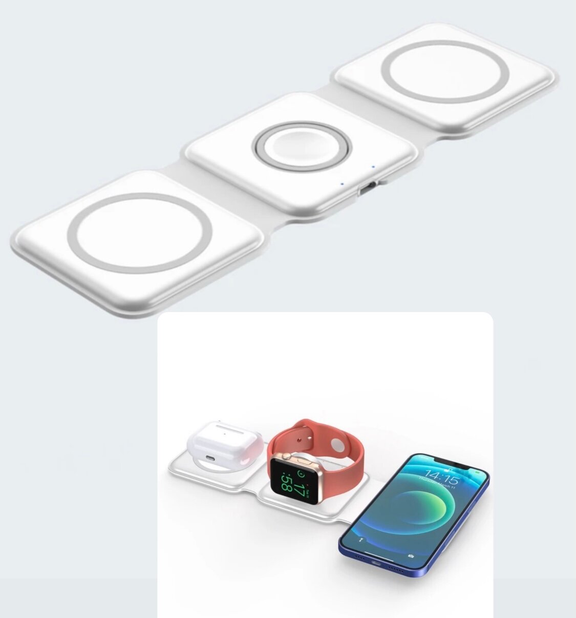Отзывы на Магнитное беспроводное зарядное устройство 3 в1 ,зарядка для телефона,наушников,часов,складная подставка для телефона.(белый)