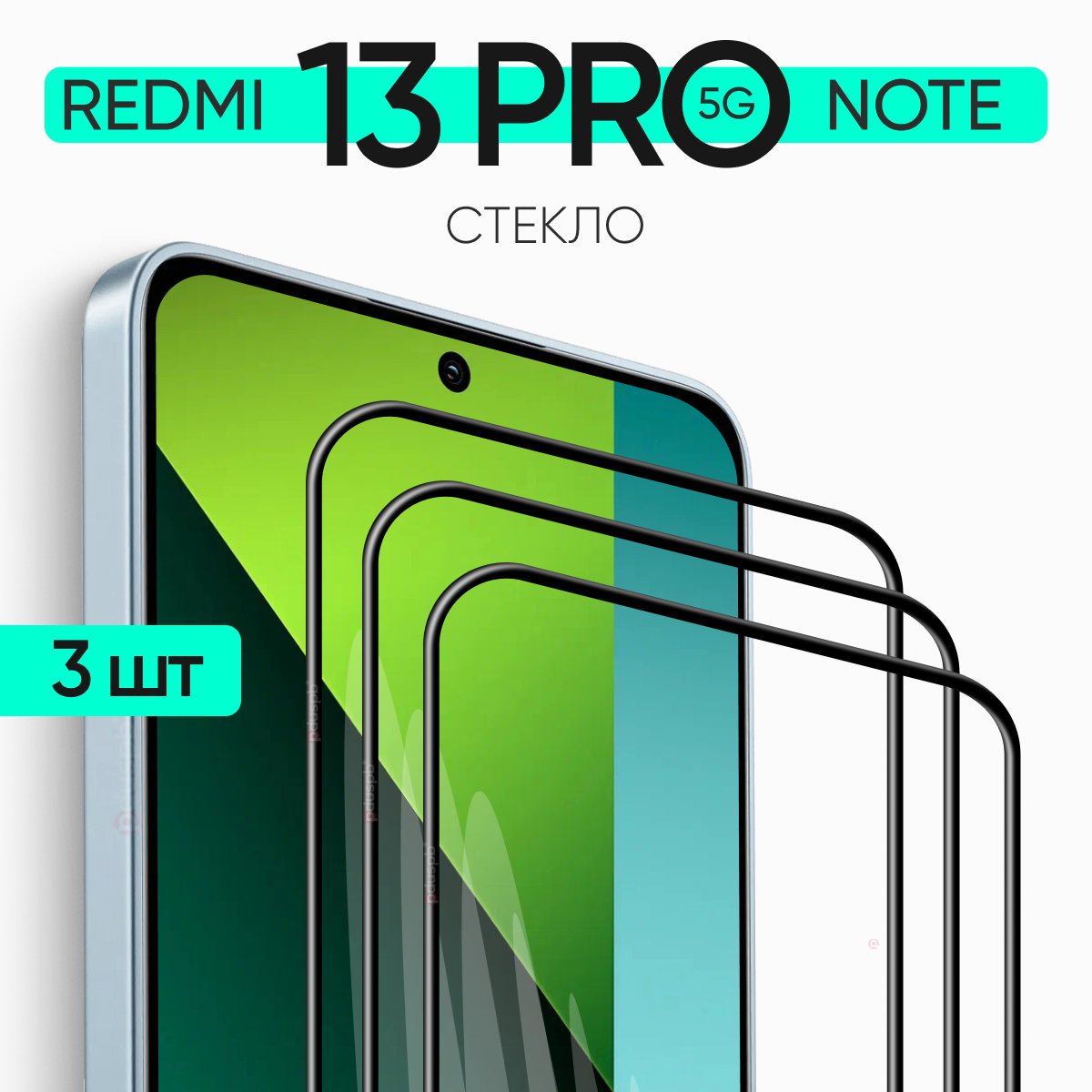 Защитное закаленное стекло (3 шт) для Xiaomi Redmi Note 13 pro 5g / Ксиоми Редми Ноут 13 про 5 джи информация: