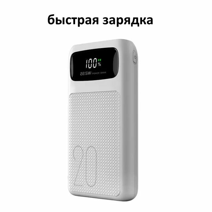 Внешний аккумулятор 20000 mAh с разъемами USB, Type-C и micro белый, повербанк с быстрой зарядкой