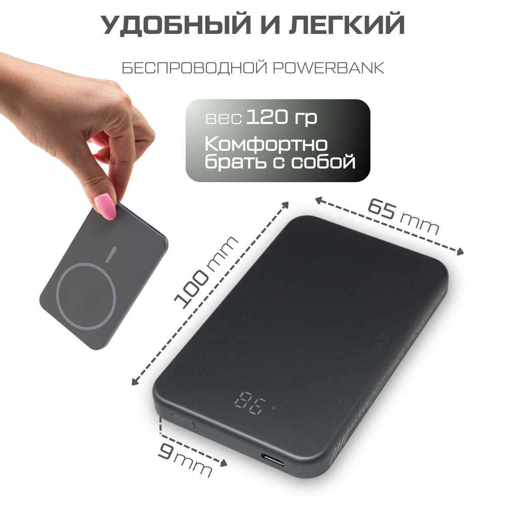 Отзывы на Ультратонкий магнитный повербанк для iPhone с быстрой беспроводной зарядкой 5000 mAh MagSafe Powerbank внешний аккумулятор