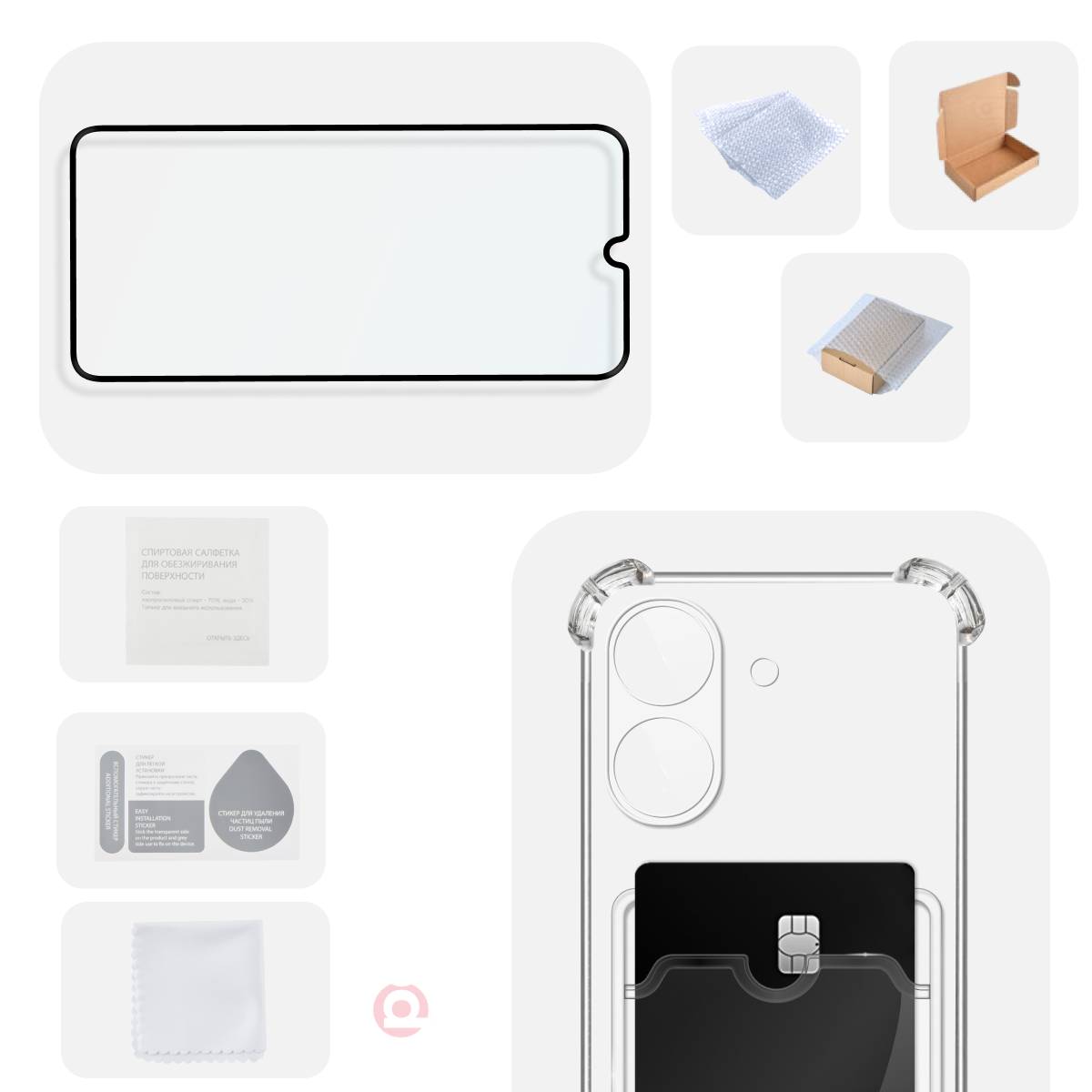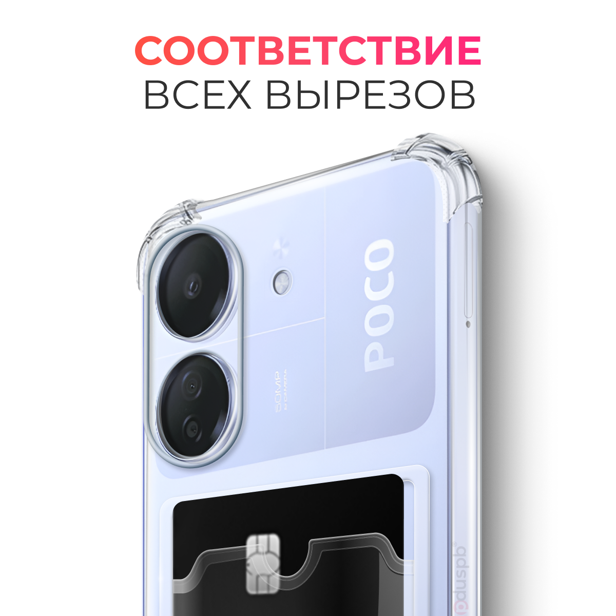 10 цен на Комплект 2 в 1: Чехол №05 + стекло для POCO C65 (Поко С65) противоударный прозрачный с карманом для карт и защитой камеры и углов