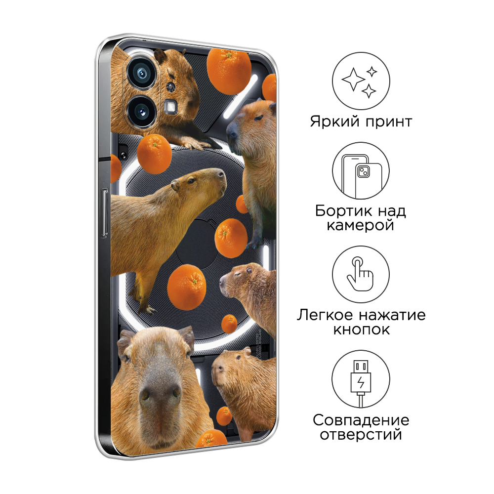 10 цен на Чехол на Nothing Phone 1 / Нафинг Фон 1 с принтом Капибара и апельсины, прозрачный