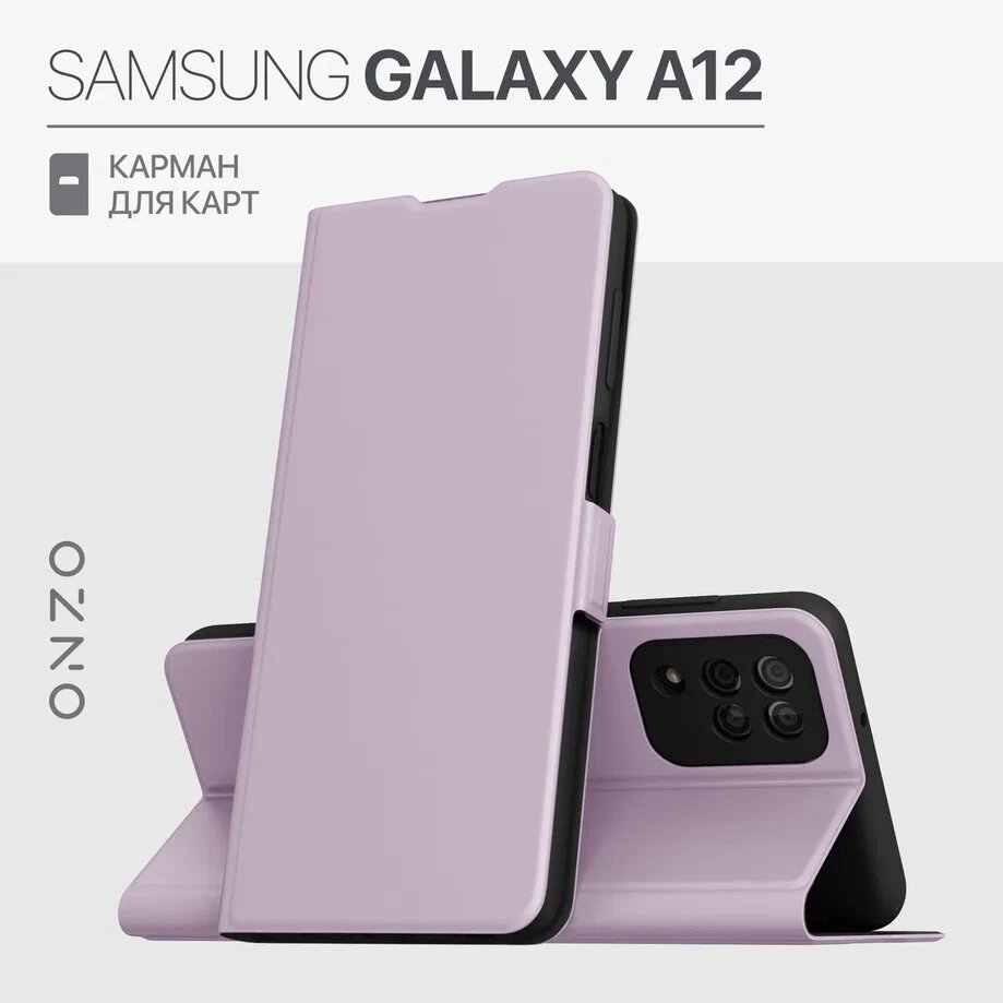 10 цен на Чехол на Samsung Galaxy A12 сиреневый / Книжка для Самсунг А12 с кармашком для карты и пропуска