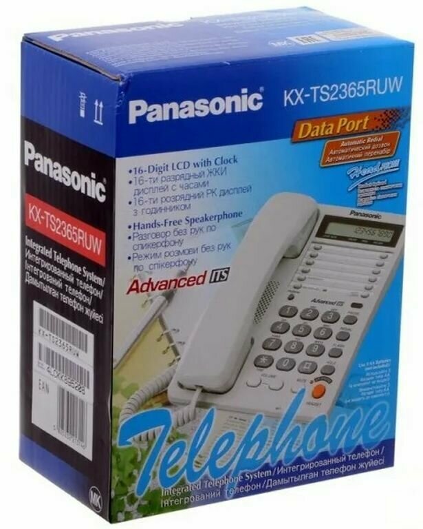 Телефон проводной Panasonic KX-TS2365RUW, громкая связь, экран, белый информация: