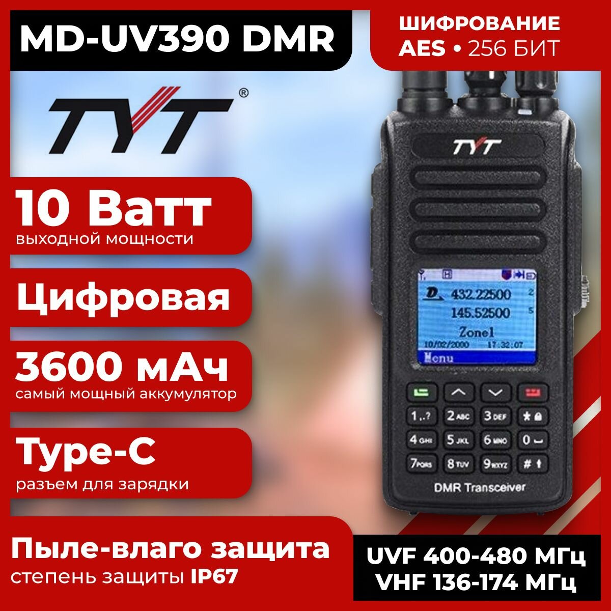 Рация TYT MD-UV390 DMR 10W, шифрование AES 256,аккумулятор 3600 TYPE-C информация: