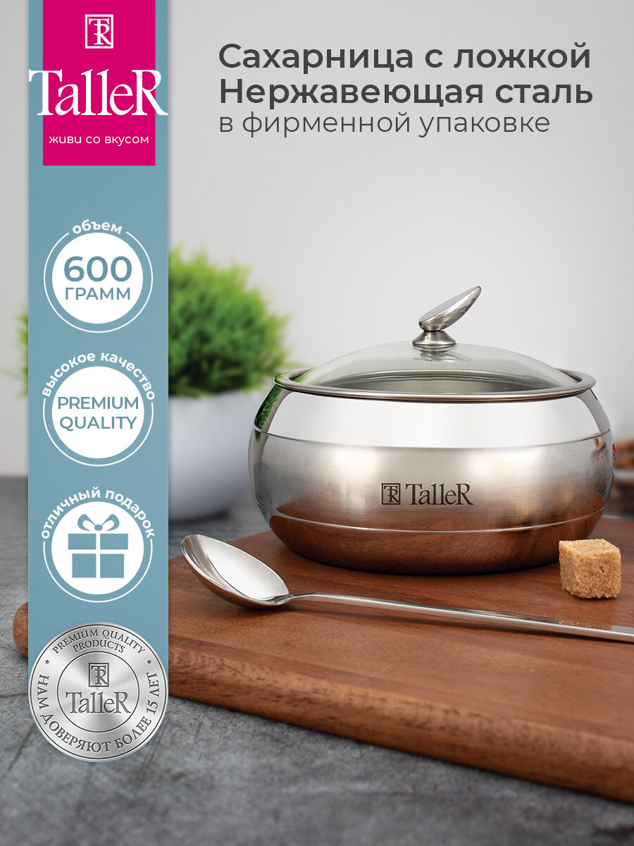 Сахарница TalleR TR-61126 Кэнди 600 г, нержавеющая сталь