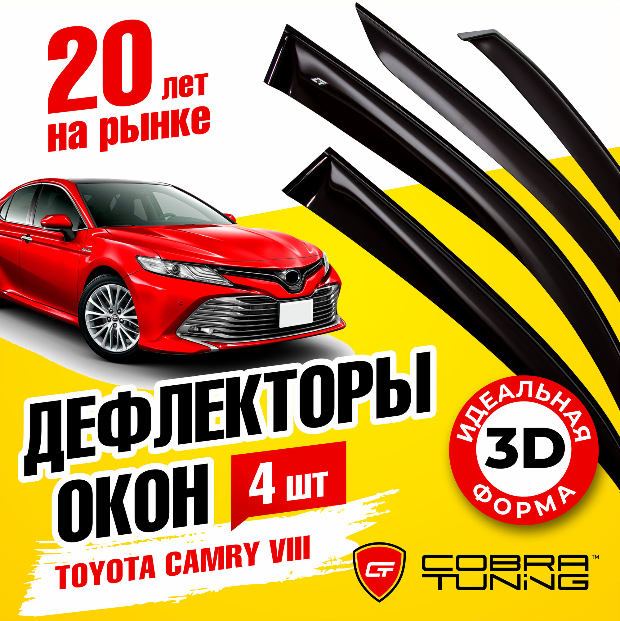 Дефлекторы боковых окон для Toyota Camry 8 (Тойота Камри) 70 кузов 2018-2022, ветровики на двери автомобиля, Cobra Tuning информация: