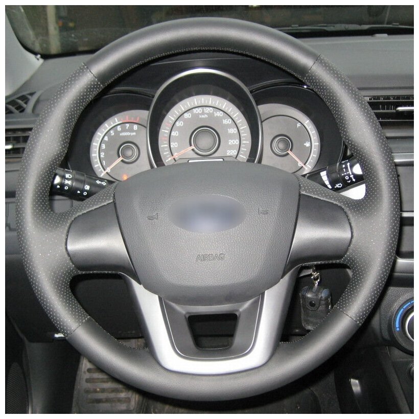 10 цен на Накладка из натуральной кожи "Кожа рулит" на руль Kia Rio III (UB) (2011-2015), черная, для руля без штатной накладки