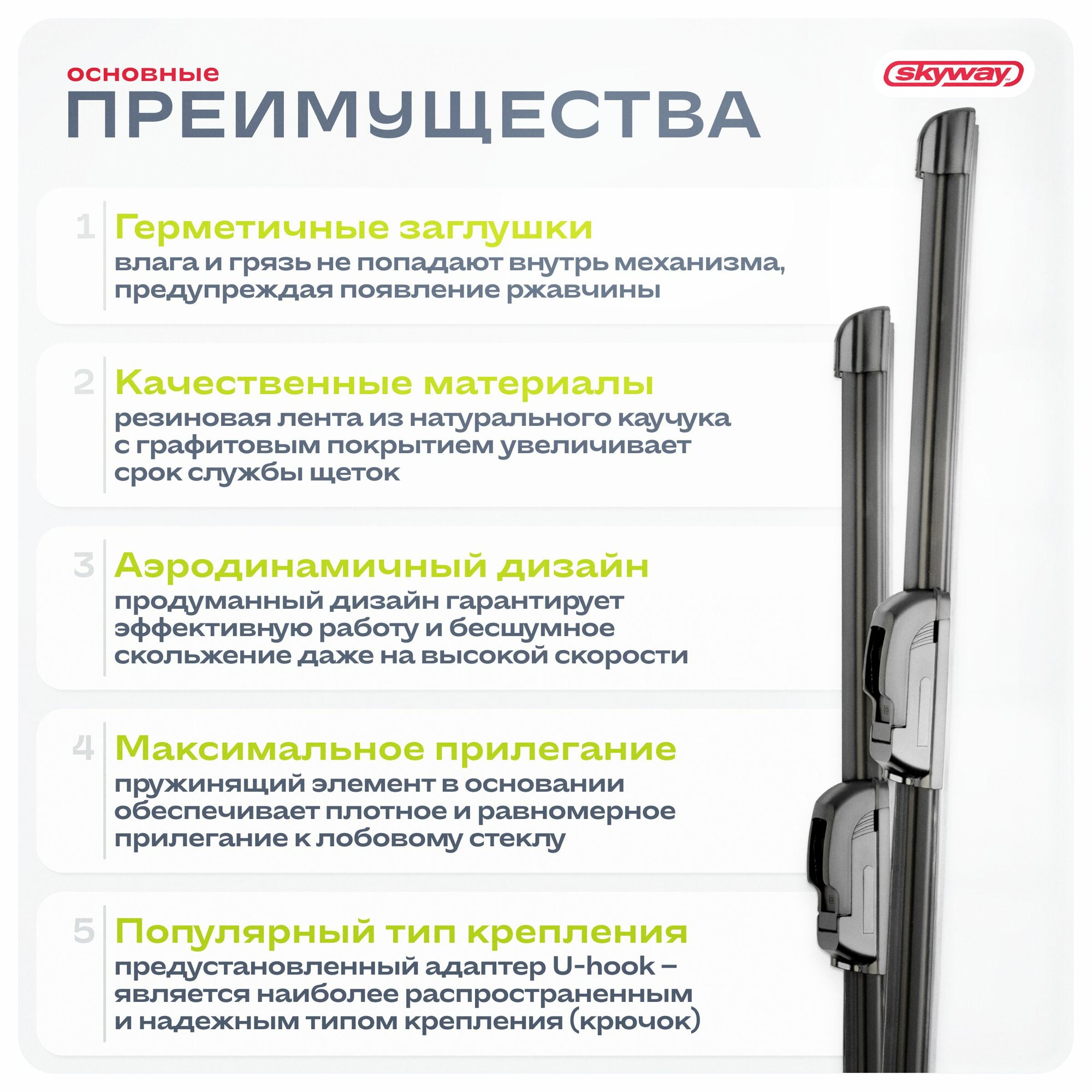 Щетка стеклоочистителя бескаркасная SKYWAY универсальный адаптер 45см/18"