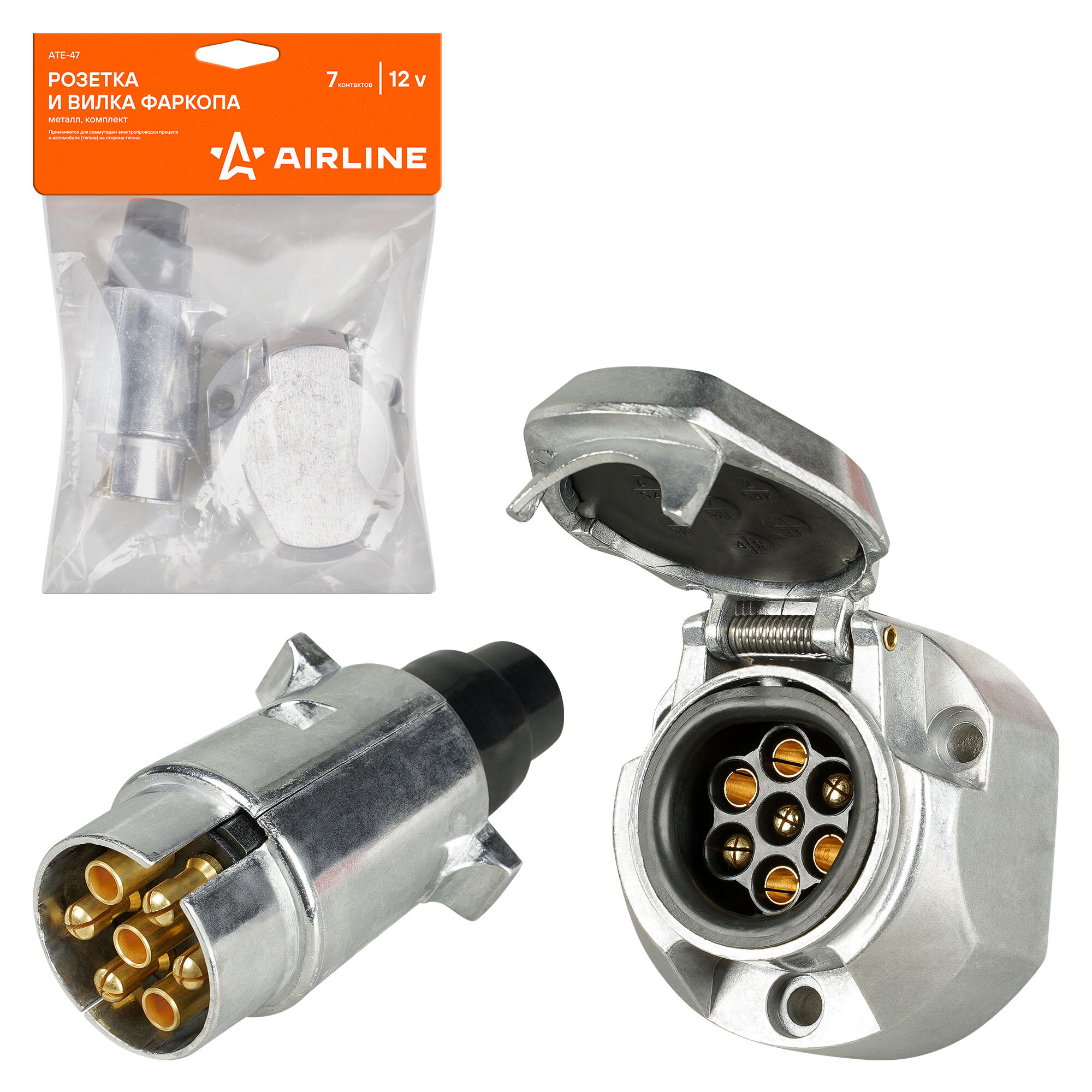 Розетка и вилка фаркопа 12В 7 контактов металл комплект ATE-47 AIRLINE информация: