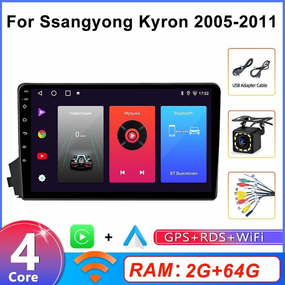 Автомагнитола для SsangYong Actyon 2005-2010, Kyron 2005-2015(4 ядра 2+64GB),WiFi,Android Auto информация: