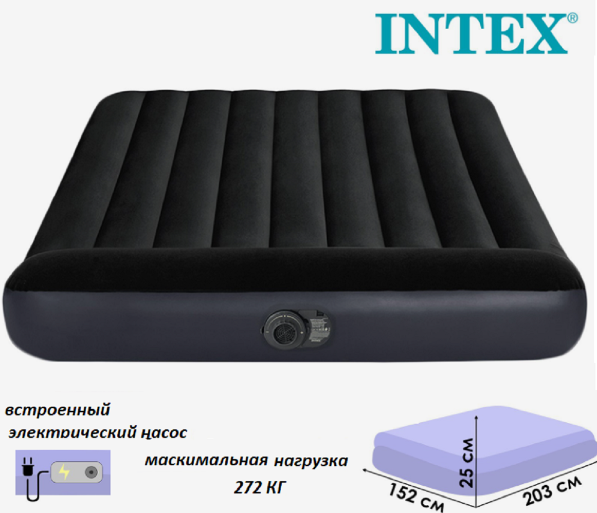 Матрас надувной Intex, 203х152х25 см, 64150NP, нас встроен, электр, флок, 273 кг
