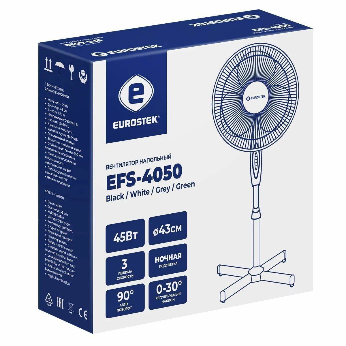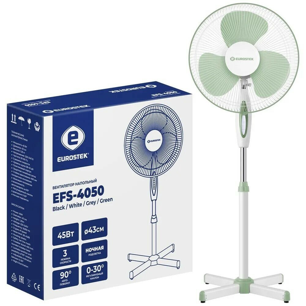 Вентилятор Eurostek EFS-4050, белый/зеленый информация: