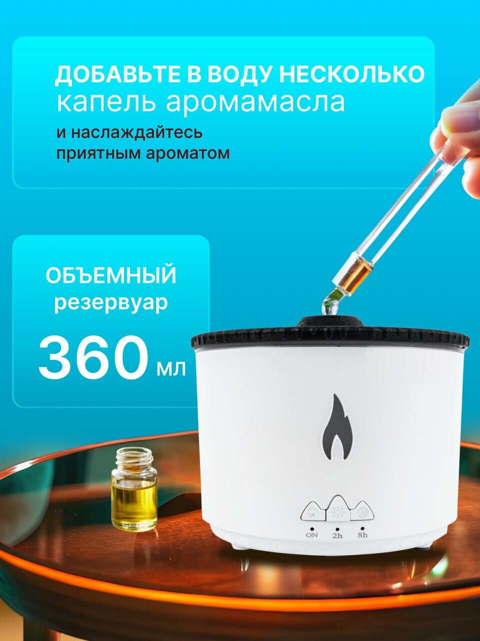 Увлажнитель воздуха и аромадиффузор с подсветкой для дома, ночник с эффектом пламяни
