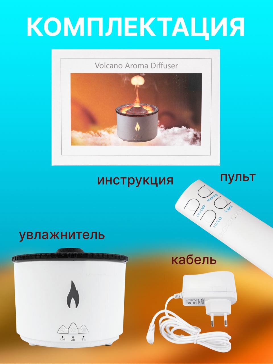 10 цен на Аромадиффузор увлажнитель воздуха Вулкан с подсветкой белый