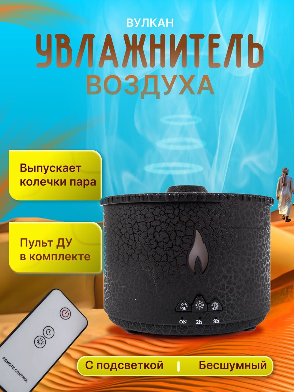 Аромадиффузор увлажнитель воздуха Вулкан с подсветкой черный информация: