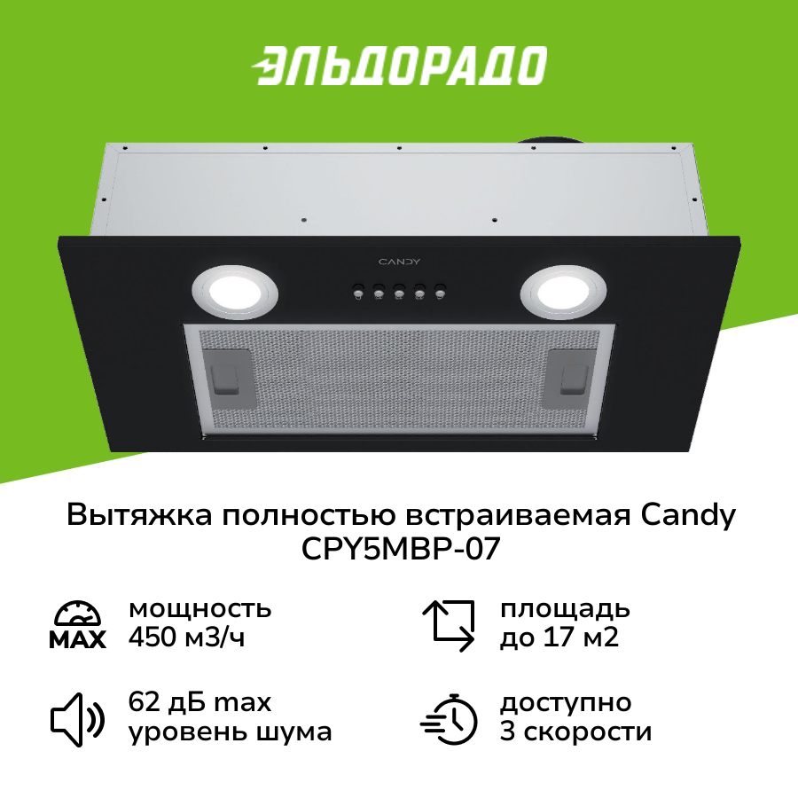 Вытяжка полностью встраиваемая Candy CPY5MBP-07 черная информация: