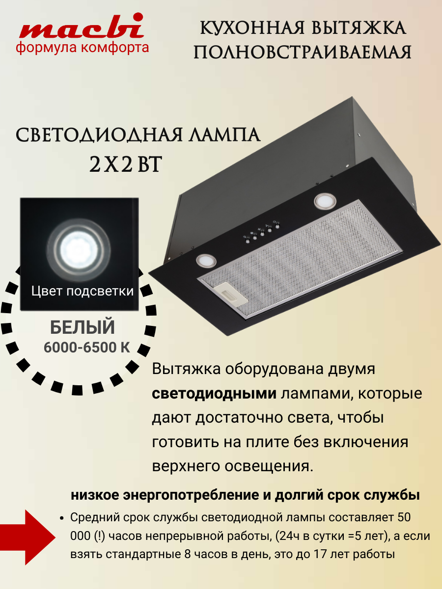 Вытяжка кухонная MACBI полновстраиваемая 60см S-BOX-60 BLACK 850 м3/ч Черная