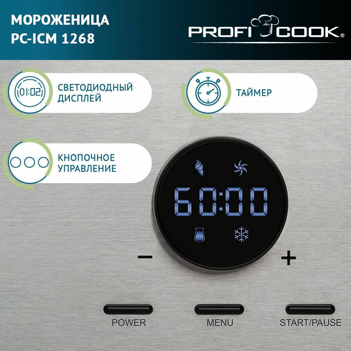 10 цен на Мороженица Profi Cook PC-ICM 1268 inox автоматическая, время приготовления 20-25 мин, ёмкость 1500 мл