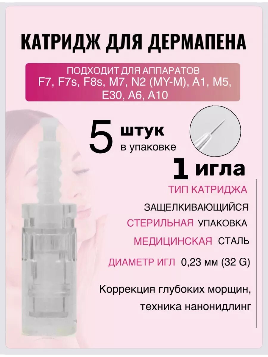 Картридж для дермаручки 1 игла белый короткий байонет 5 шт информация: