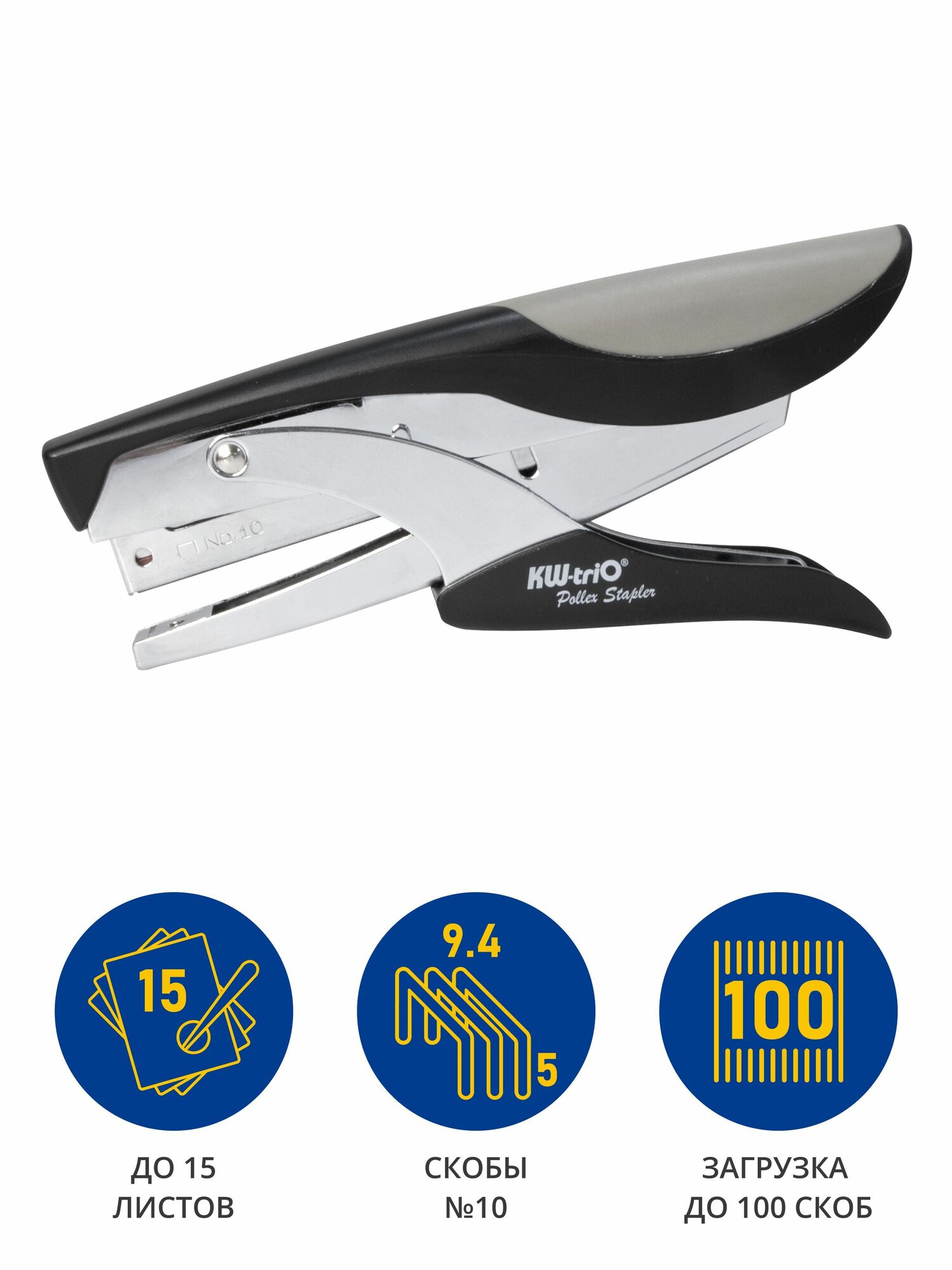 Плиер Kw-Trio 5133 Pollex N10 (15 листов) серый/черный, 100 скоб, металл/пластик, закрытый информация: