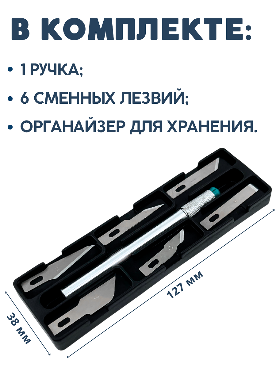 | Дополнительная информация | Макетный нож скальпель с набором с лезвий |