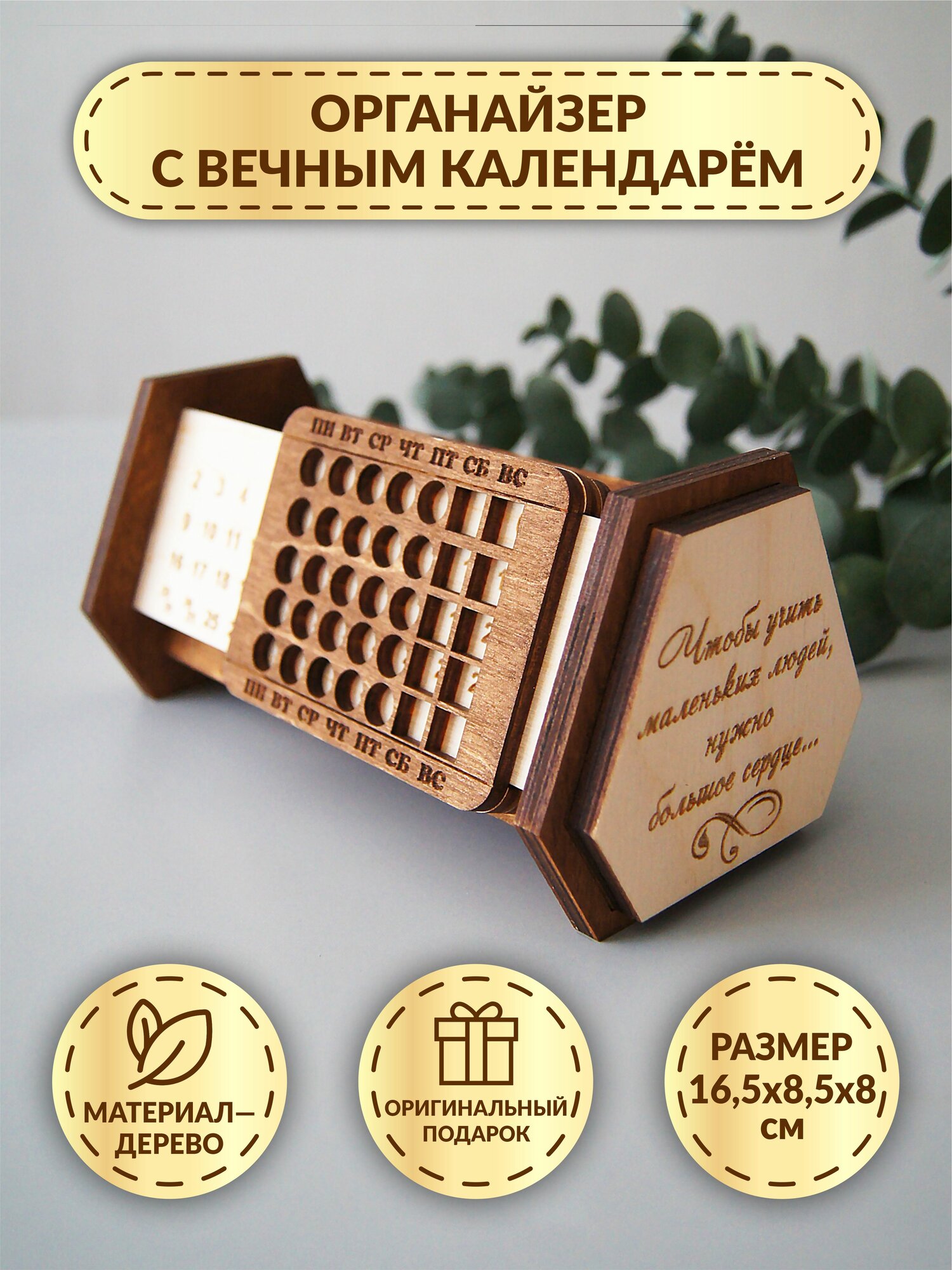 Отзывы на Маленький настольный органайзер с вечным календарем DecorSo / Канцелярская настольная подставка из дерева / Подарок для учителя