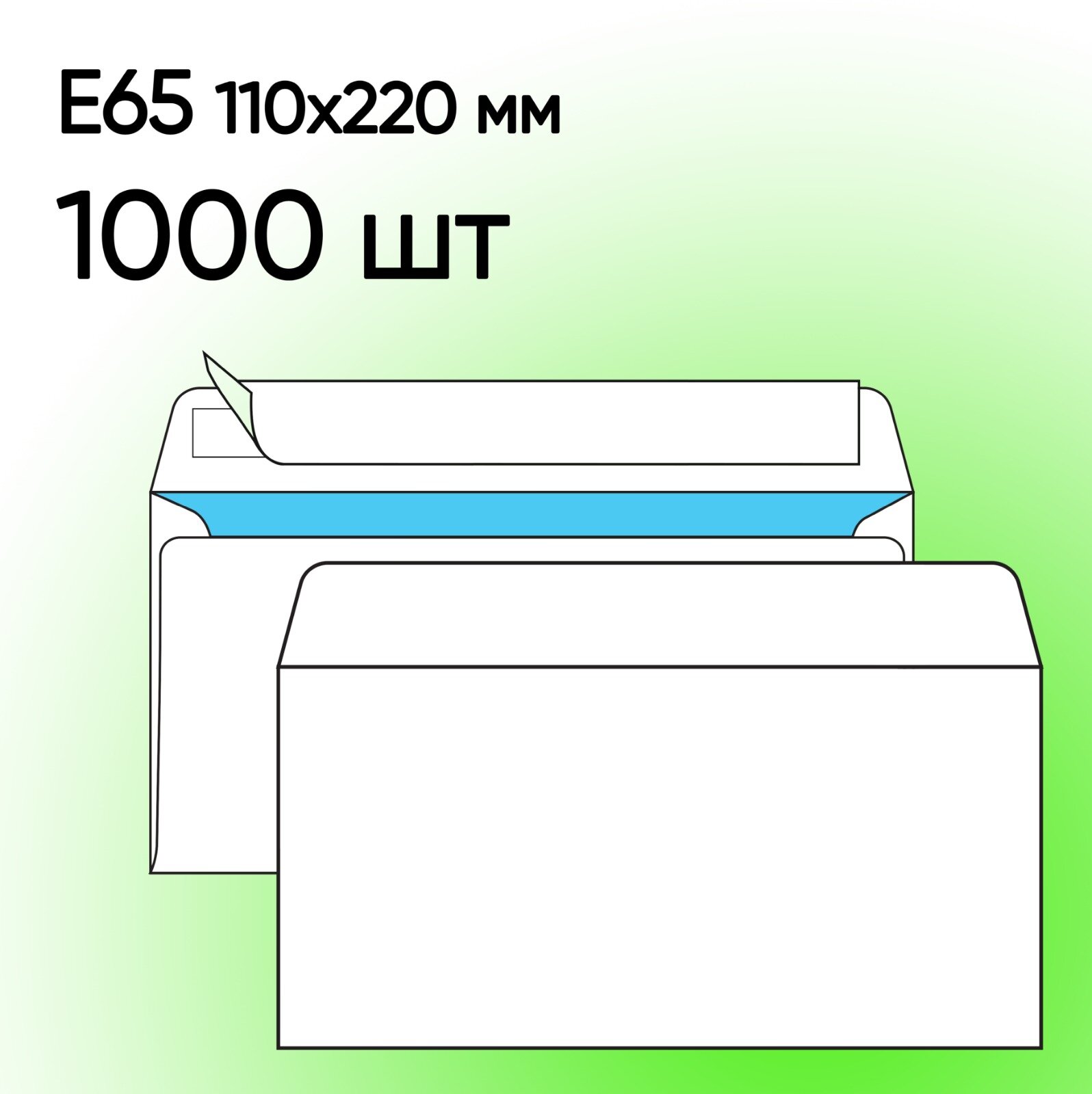 Конверт Е65 белый 1000 шт 110х220 мм стрип информация: