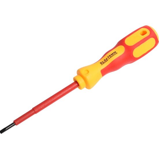 Отвертка шлицевая REXANT диэлектрическая SL 3х75 мм до 1000 В с двухкомпонентной рукояткой информация: