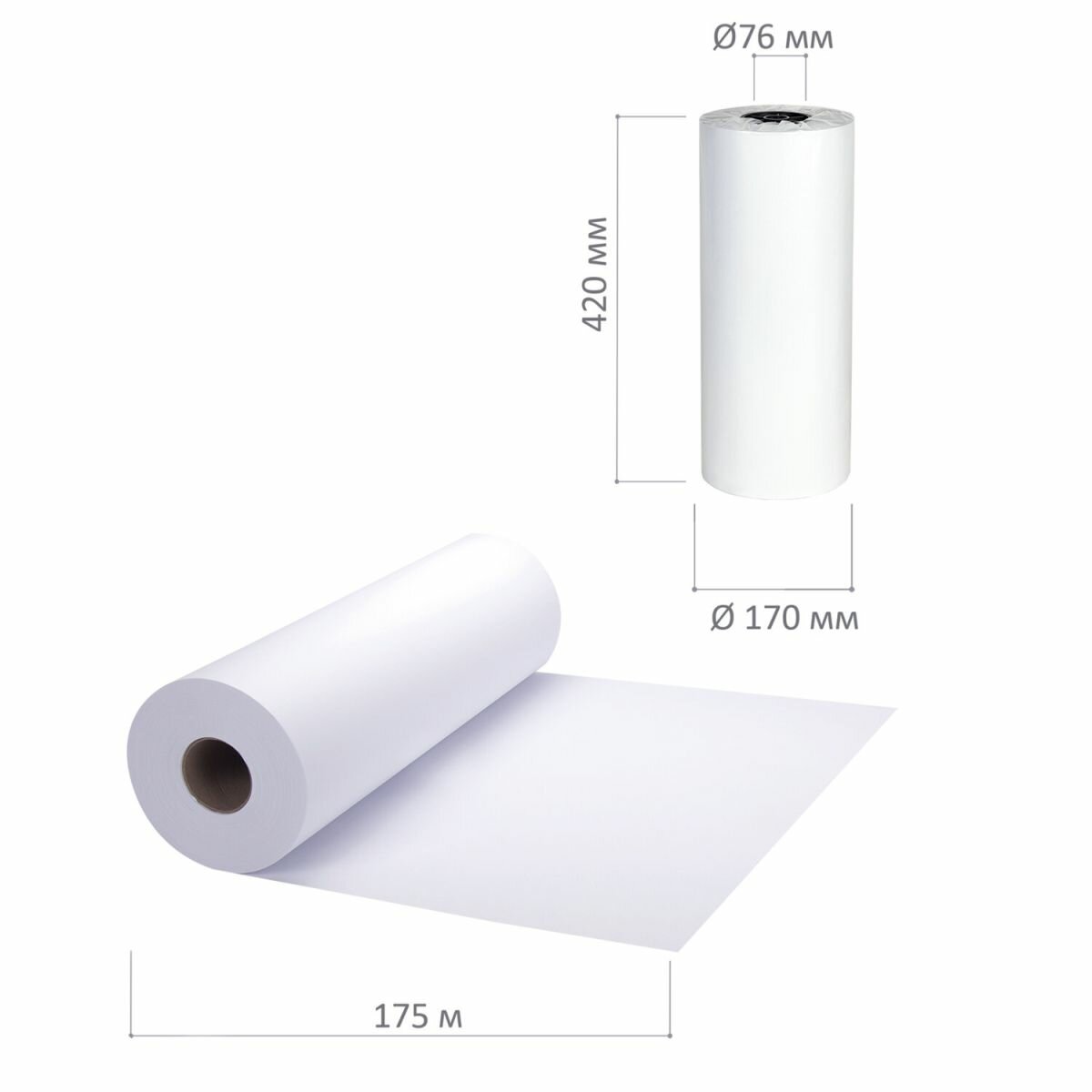 10 цен на Бумага широкоформатная рулон для плоттера, 420 мм х 175 м х втулка 76 мм, 80 г/м2, белизна CIE 146%, BRAUBERG, 110453