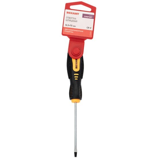 Отвертка шлицевая REXANT SL 3х75 мм c двухкомпонентной рукояткой информация: