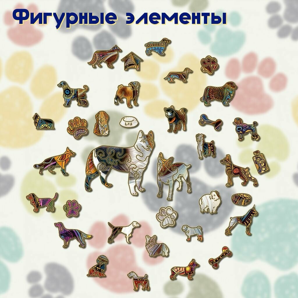 Деревянный пазл BoberBox "Мандала Корги триколор", 262 деталей 1 085 ₽