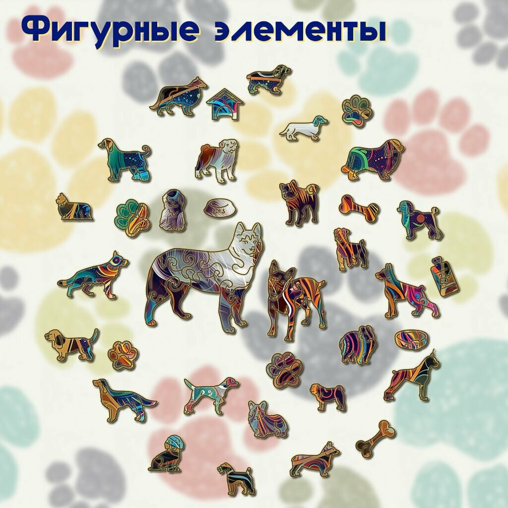Деревянный пазл BoberBox "Мандала Корги триколор", 262 деталей 1 085 ₽