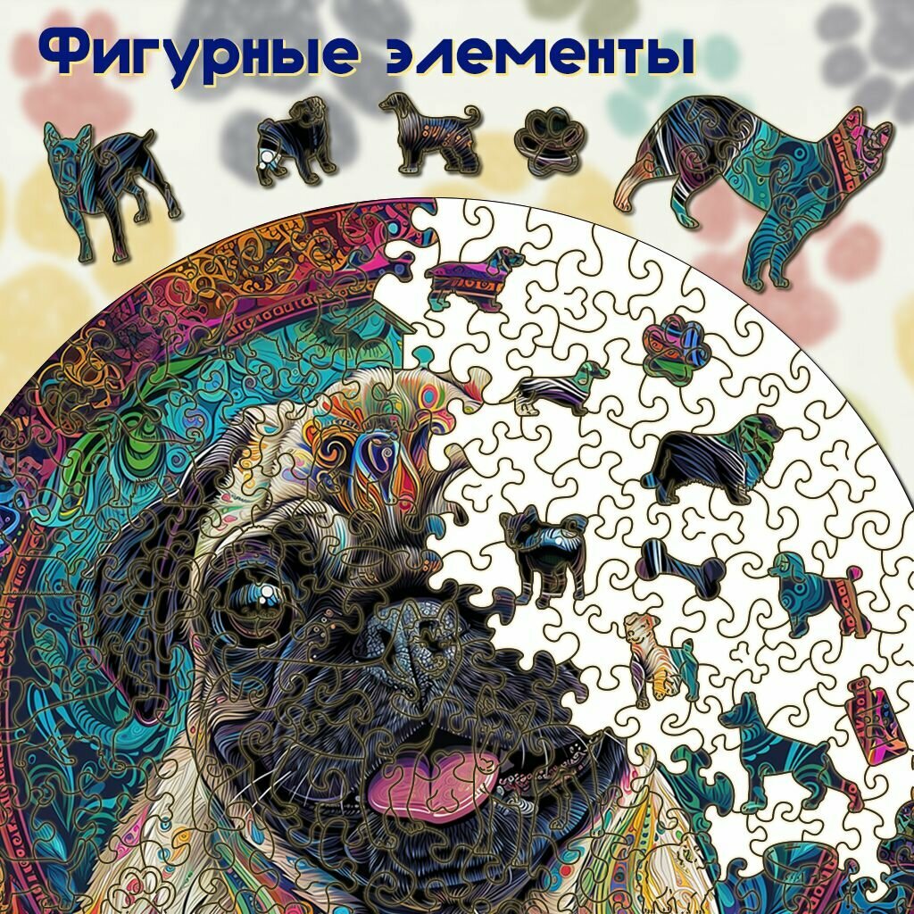 Деревянный пазл BoberBox "Мандала Мопс", 262 деталей информация: