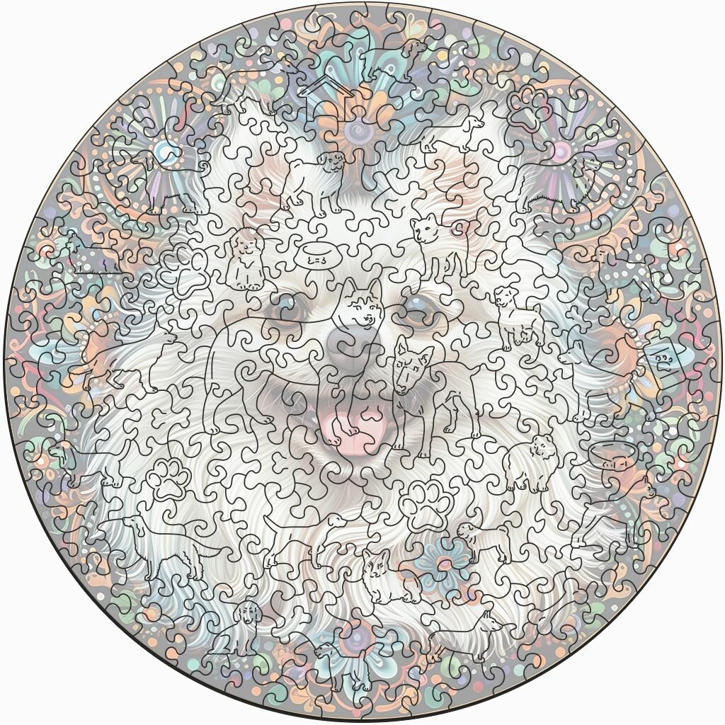 Деревянный пазл BoberBox "Мандала белый Шпиц", 262 деталей информация: