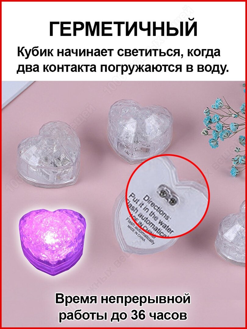 | Комплектация | 12 светящихся кубиков-сердечек для ванной |
