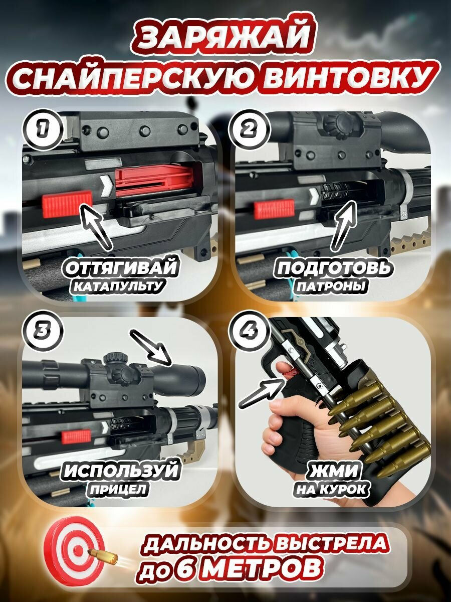 Отзывы на Винтовка снайперская детская Play Okay мягкие пули и пули-шарики, abs-пластик, батарейка (не входит в комплект), черный