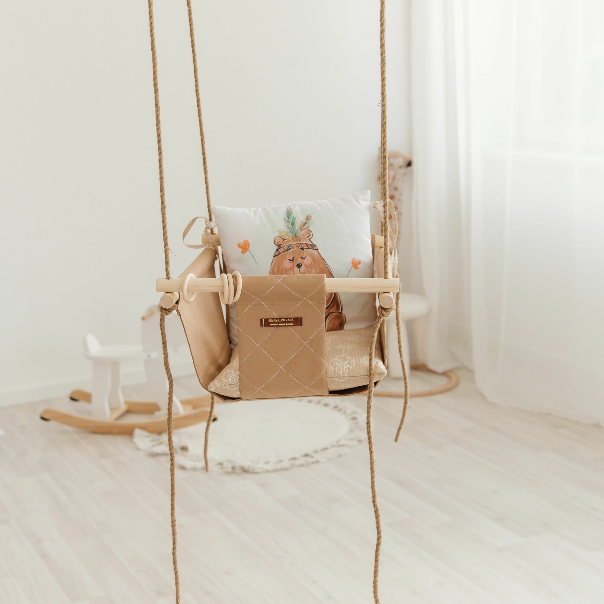 Отзывы на Качели подвесные детские тканевые с ремнем безопасности для дачи и для дома "Лесные жители" подушка Мишка