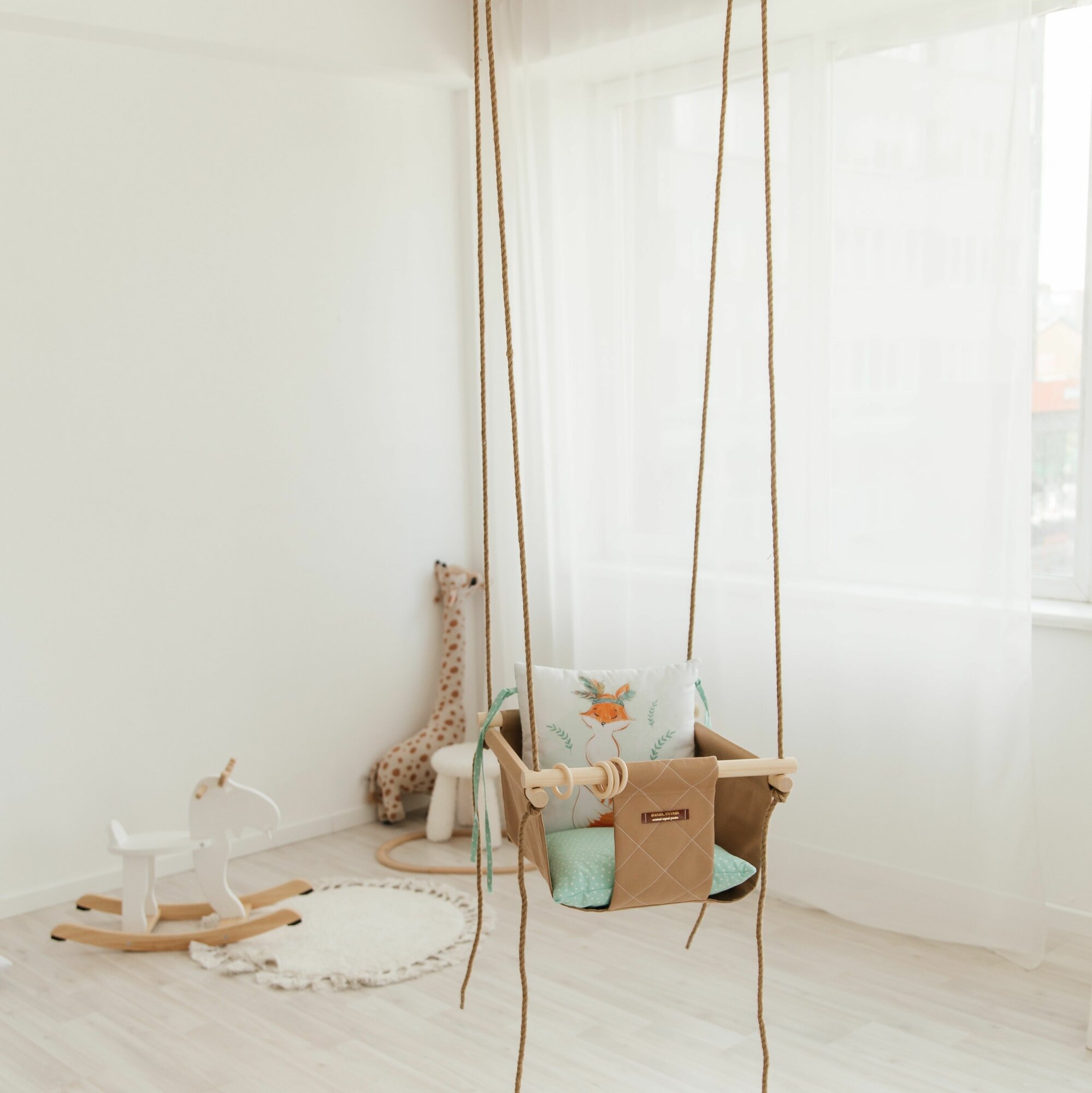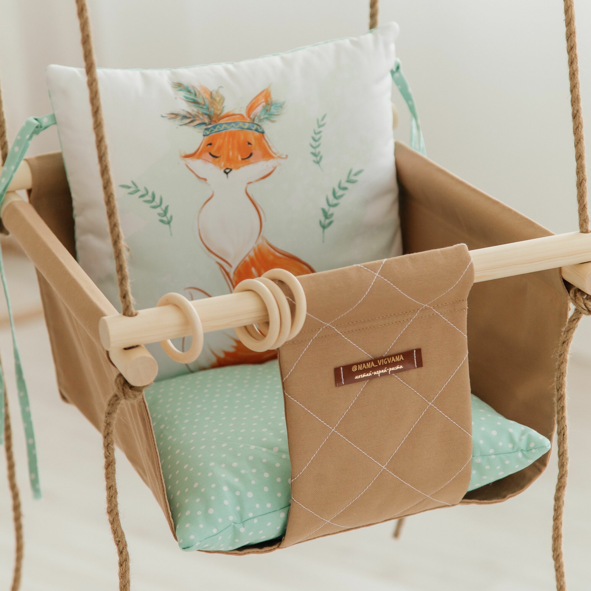 Отзывы на Качели подвесные детские тканевые с ремнем безопасности для дома и дачи "Лесные жители" подушка Лисичка с 6 месяцев
