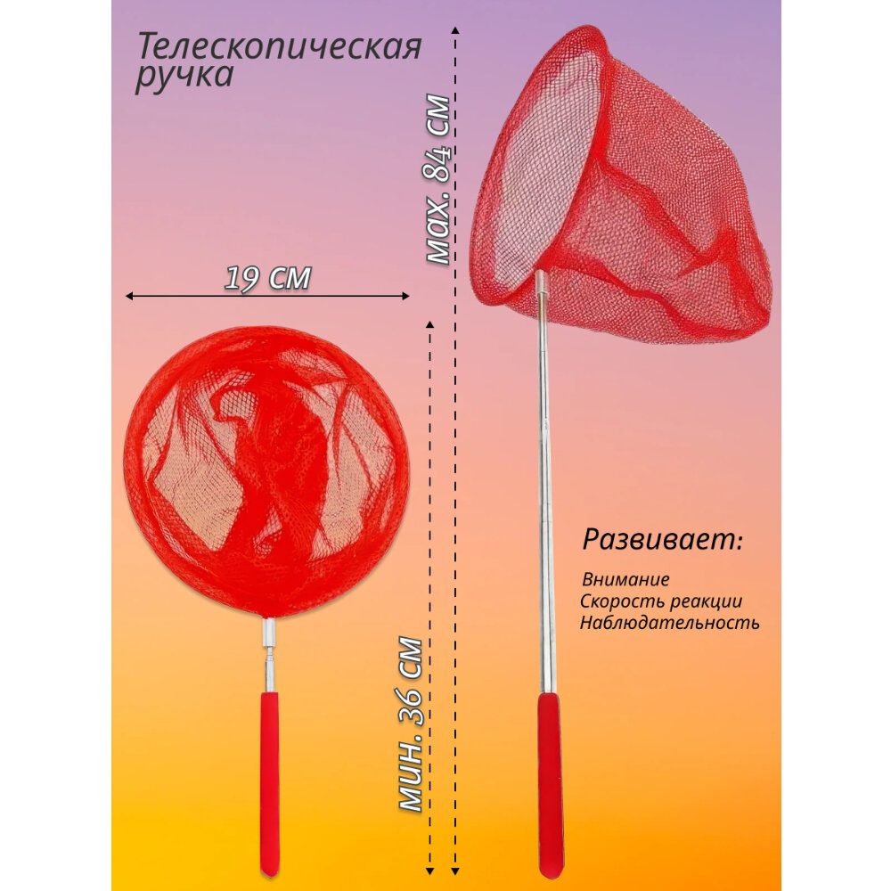 Детский сачок для бабочек с телескопической ручкой длина от 36 до 84 см, диаметр 19 см, W766L информация: