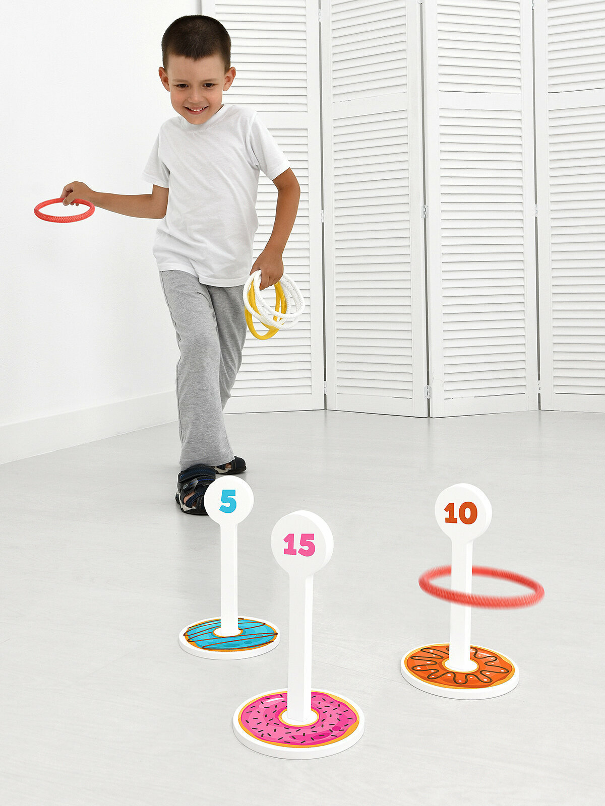 | Комплектация | Картонная упаковка; фурнитура; кольца для метания - 6 шт; кольцеброс - 3 шт |