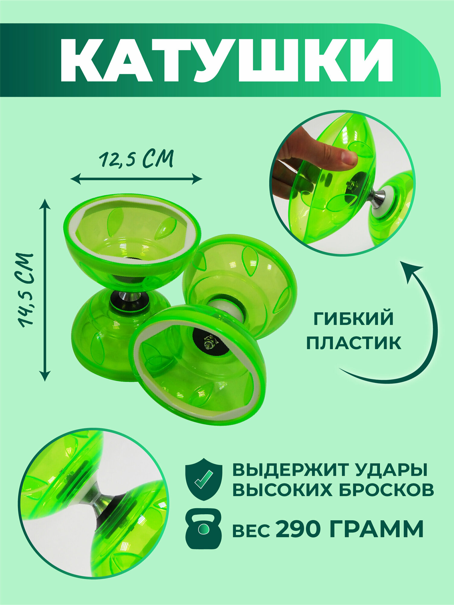 Диаболо цирковое для жонглирования, зеленого цвета информация:
