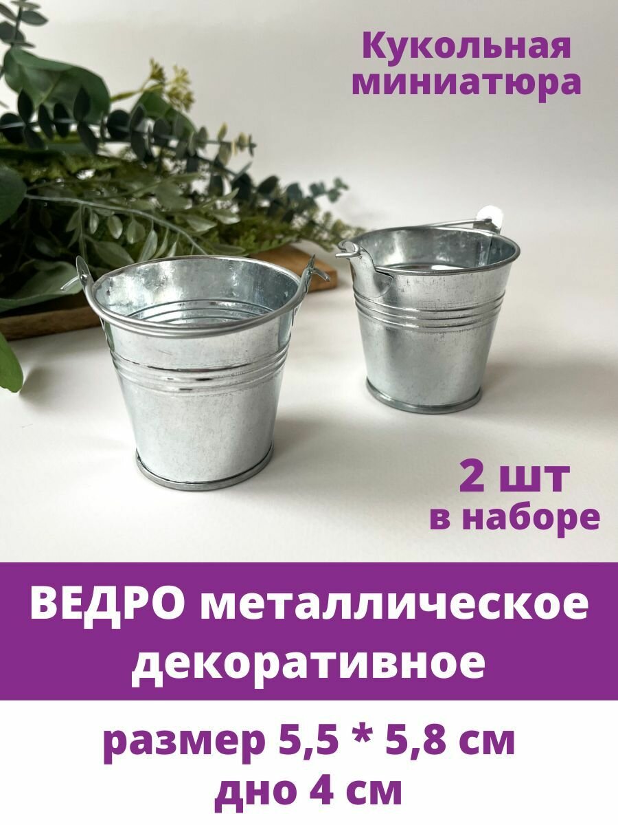Отзывы на Ведро металлическое, декоративное, кукольная миниатюра, размер 5,5*5,8 см, набор 2 шт.