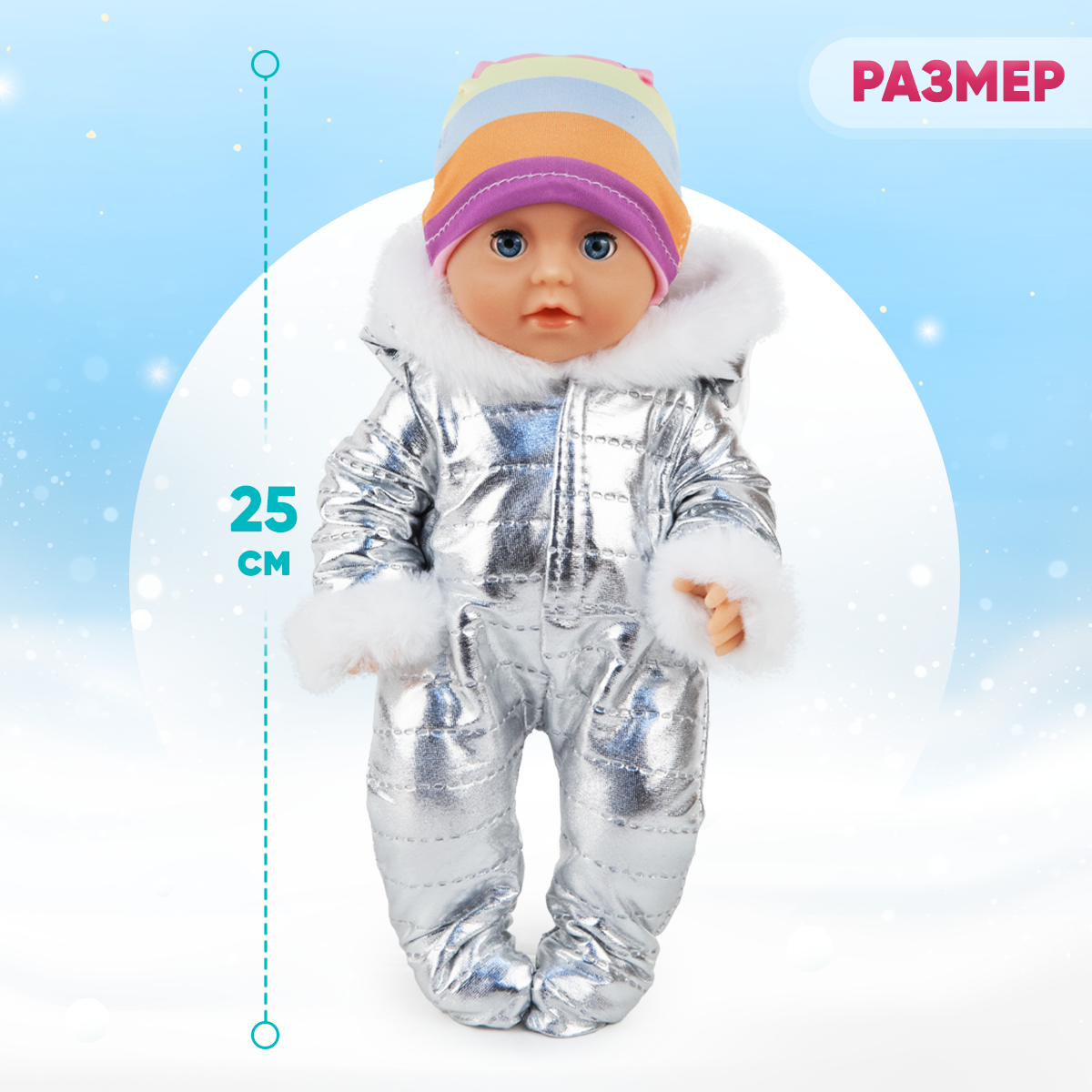 | Комплектация | Кукла-Пупс, горшочек, градусник, шприц, отоскоп, ложечка, ножницы, зажим, соска, бутылочка, свидетельство о рождении |